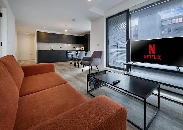 Das 75 m² große Joyful Group - Warm 2 Bed Ensuite Apartment Near Manchester City Centre And Old Trafford in Manchester befindet sich ungefähr 25 Gehminuten vom Museum of Science and Industry und circa 4 km vom Messegelände EventCity entfernt.